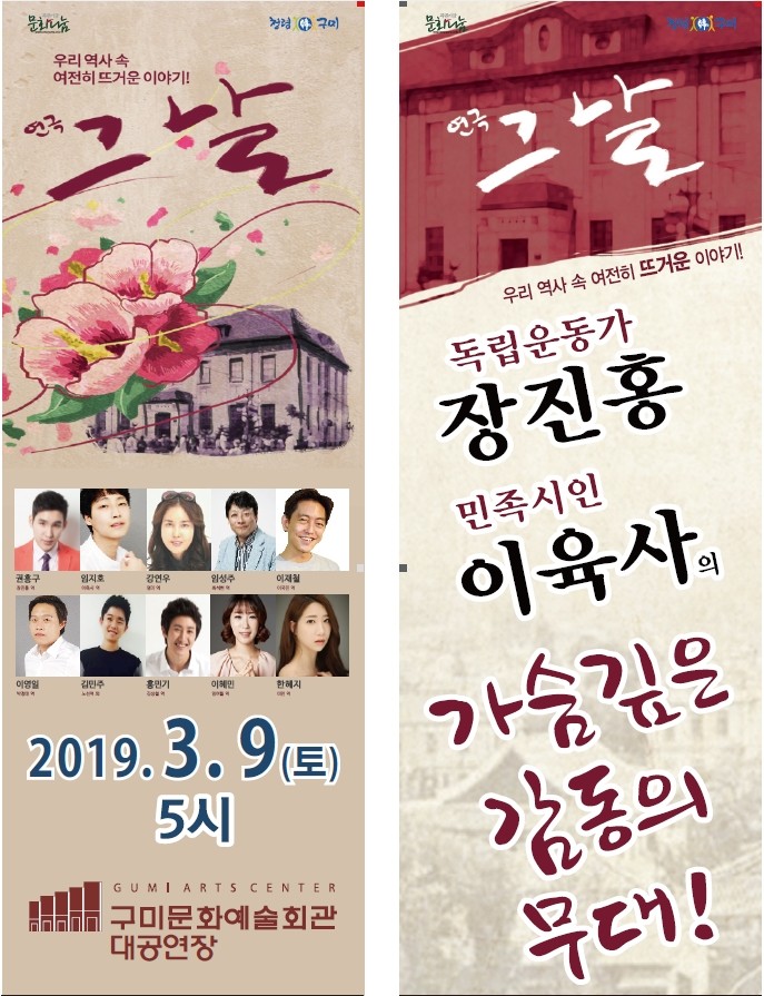 | ▲ 구미시 문화예술회관에서 공연하게될 독립연극 ‘그 날’ 의 배너광고.(사진 = 구미시 제공) |