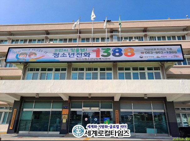 15일 익산시는 “청소년전화 1388 홍보사업으로 익산시청 본관 전광판 홍보활동 및 행정 게시대 홍보활동을 진행하고 있다”며 “찾아가는 상담 활동으로는 센터 접근이 어려운 읍·면 단위 거주 청소년들을 위해 상담 및 홍보활동을 지속적으로 실시하고 있다”고 밝혔다.