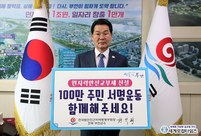 21일 전북 부안군에 따르면 전국 원전 인근지역 동맹(이하 원전동맹)이 추진하는 ‘원자력안전교부세 신설 촉구 100만 주민 서명운동’이 조기에 목표를 달성했다.