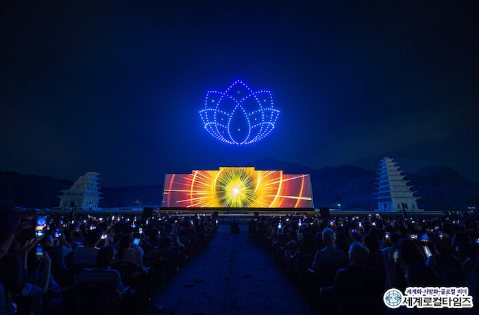 15일 익산시에 따르면 지난 9일 개막한 ‘2023 익산 미륵사지 미디어아트 페스타’가 오는 10월 9일까지 한 달간 미륵사지의 밤을 밝힌다. 매일 오후 7시 30분 미륵사지 석탑을 배경으로 펼쳐지는 미디어 아트쇼를 볼 수 있다. 오는 16일을 제외한 토요일마다 드론 라이트쇼가 밤하늘을 장식한다.