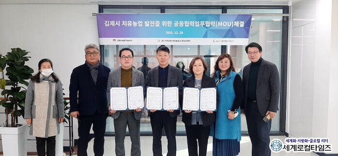 [세계로컬타임즈 조주연 기자] 전북 김제시가 전주기전대학교 치유농업사양성사업단, 김제시 신활력사업단과 함께 치유농업 발전을 위한 공동협력업무 협약을 체결했다.
