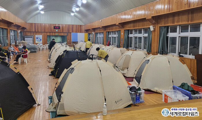 마을 주민 40여명 중 친인척집 등으로 옮긴 일부 주민을 제외하고 23명이 대피소로 옮겼다.