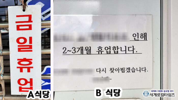 식당 입구에 개인적인 사정에 의해 “2-3개월 휴업합니다”라는 안내 문구가 적혀 있었다.