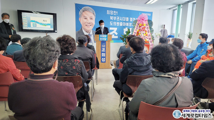 [세계로컬타임즈 글·사진 조주연 기자] 오는 6·1 지방선거 전북도의원 익산 제2선거구 조희성 예비후보가 29일 선거사무소 개소식을 가졌다.