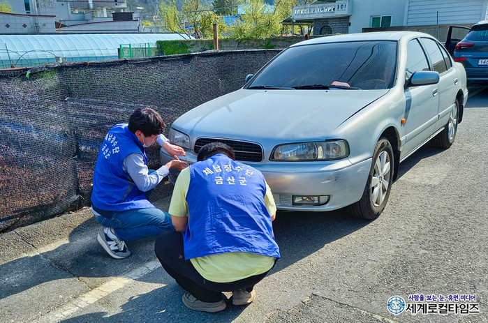 | ▲체납차량 영치모습(사진=금산군 제공) |