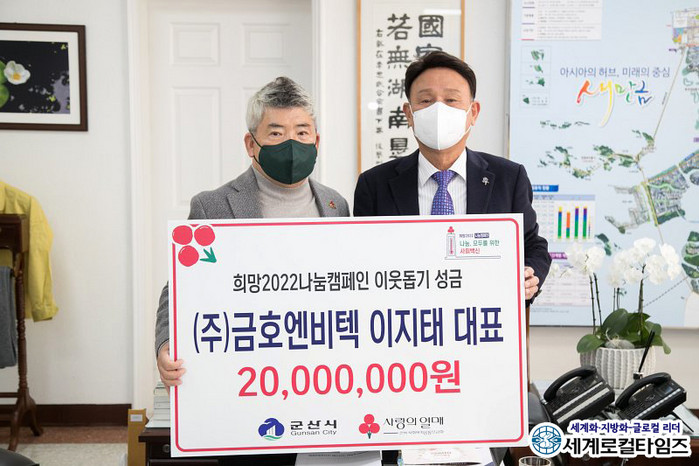 | ▲사진은 2021년 12월, 희망 2022 나눔캠페인에 참여한 금호엔비텍 이지태 대표 ⓒ군산시 |