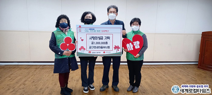 25일 김제시에 따르면 지난 21일 금구면 새마을부녀회가 어려운 이웃들을 위해 써달라며 금구면행정복지센터를 방문해 이웃돕기성금 100만원을 기탁했다.