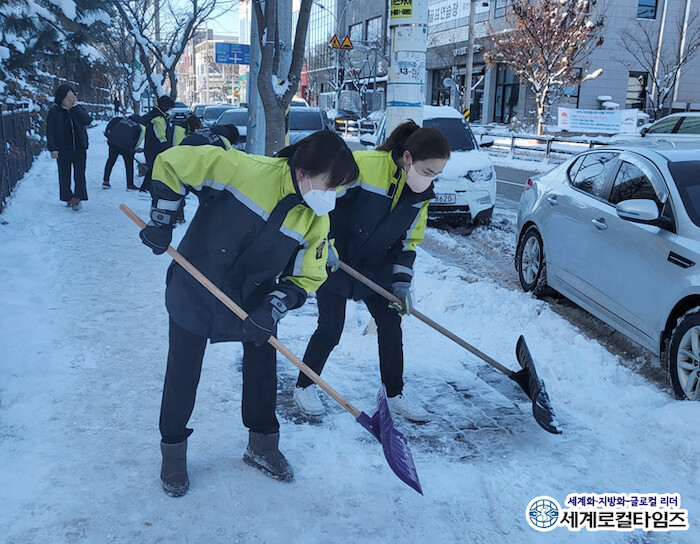 ▲사진은 지난해 김제소방서 의용소방대원들의 제설작업 모습 (사진제공=김제소방서) |