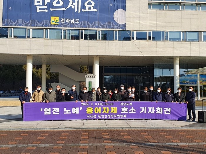 [세계로컬타임즈 조문배 기자] 신안군 천일염생산자연합회(회장 홍철기)는 지난 3일 전남도청에서 최근 연이어 보도되고 있는 염전근로자 문제에 대해 언론사의 ‘염전 노예’ 용어 사용을 자제해 달라고 호소문을 발표했다.