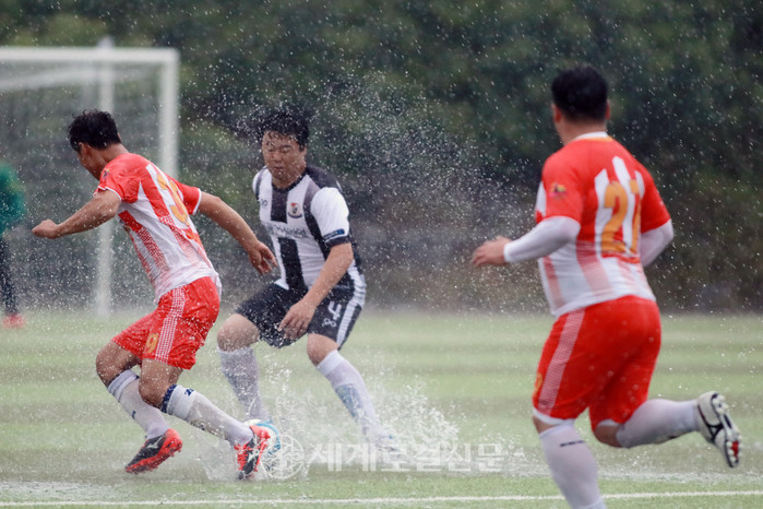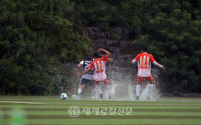 폭우 속에서도 최선을 다해 그라운드를 누빈 두 팀은 1대 1 동점으로 전·후반을 마무리했으며 승부차기에서 승자가 갈려 군산 한백축구단이 우승의 영광을 안았다.