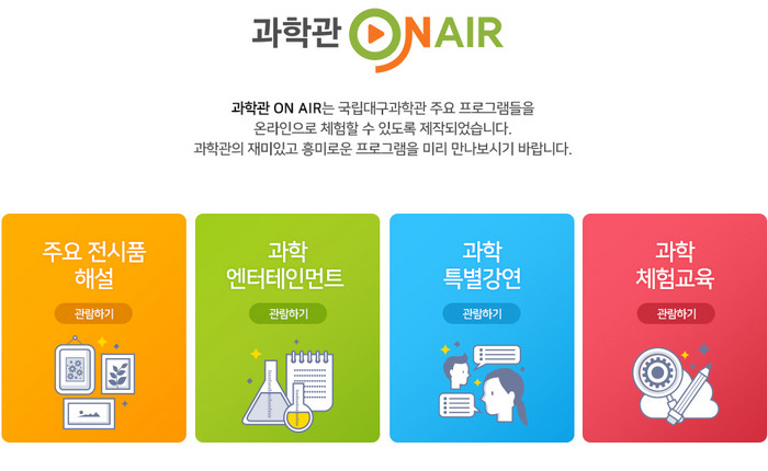 | ▲ ‘과학관 ON AIR’ 홈페이지 이미지 (사진=국립대구과학관 제공) |