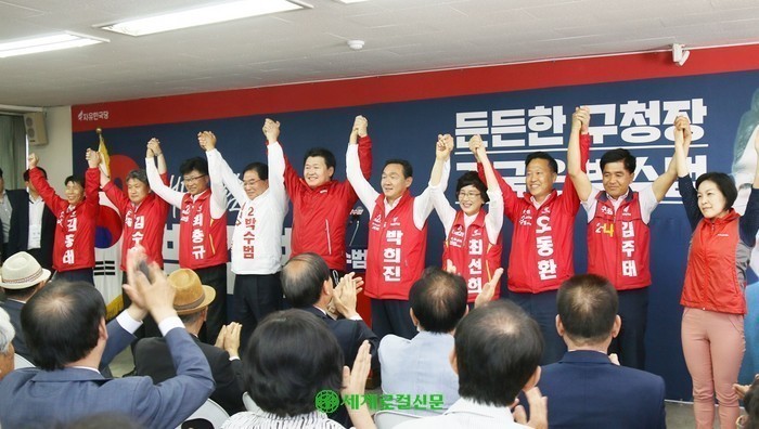 [세계로컬신문 오영균 기자] 박수범 자유한국당 대전 대덕구청장 후보가 선거사무소 개소식을 갖고 재선 승리를 향한 의지를 불태웠다.