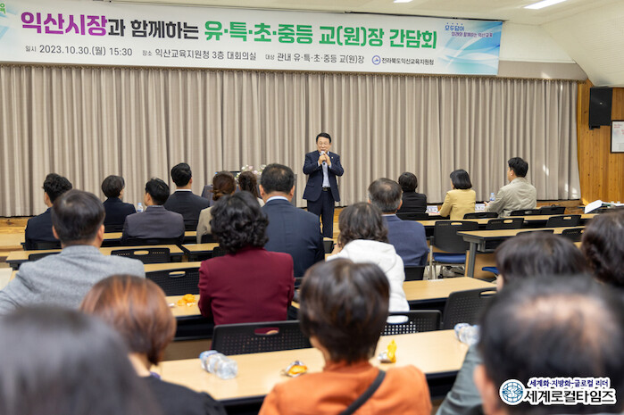 [세계로컬타임즈 조주연 기자] 정헌율 전북 익산시장이 명품교육도시 발전을 위해 유·초·중·고 교장단과 교육백년대계를 논의한다.