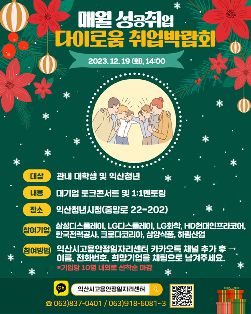 참여를 원하는 만 19~39세 청년은 오는 18일까지 익산고용안정일자리센터로 문의하거나 센터 카카오톡 채널을 추가해 사전 신청하면 된다.