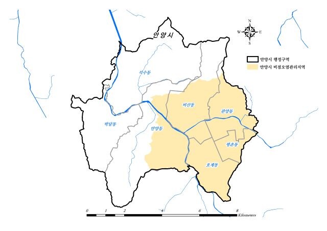 이번에 지정받은 안양천유역은 안양천 일대 호계동, 안양동, 학의천 일대 평촌동, 관양동, 비산동 등으로 불투수 면적률이 59.1%로 높고, 평촌신도시 재건축 사업에 따라 인구와 오염원의 증가가 예상되는 지역이다.