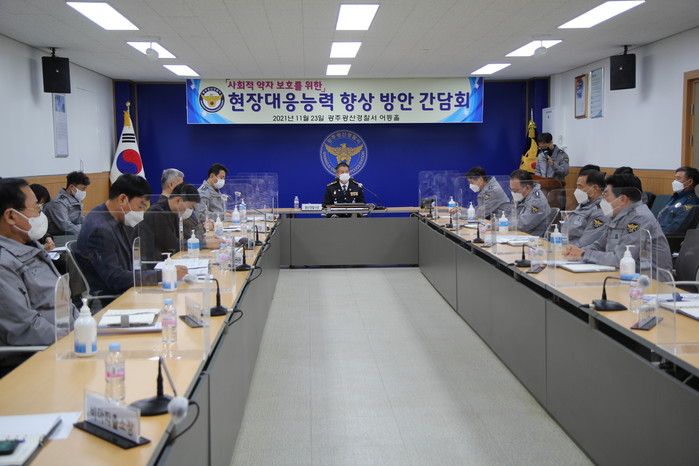 [세계로컬타임즈 김준행 기자] 광주광역시 광산경찰서는 지난 23일 어등홀에서 인천 층간소음 및 서울 신변보호자 사건 관련, '현장대응능력 강화'를 위한 해당 기능 과장 및 지역관서장과의 간담회를 개최했다.