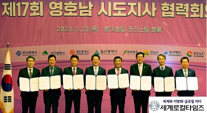 [세계로컬타임즈 김명진 기자] 전라남도는 23일 울산에서 제17회 영호남 시도지사 협력회의를 열어 지방소멸 위기 대응을 위한 ‘복수주소제도’ 도입에 노력키로 하는 등의 공동성명서를 채택했다.