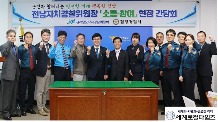 [세계로컬타임즈 김명진 기자] 전라남도자치경찰위원회는 23일 담양경찰서를 시작으로 지역사회 안전을 높이는 방안을 함께 고민하고 토론하는 ‘치안현장 간담회’를 도내 11개 경찰서와 지구대·파출소를 순회하며 개최한다고 밝혔다.