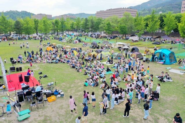 ▲ 지난 5월에 개최된 정부청사 앞 유휴지에서 열린 캠핑 행사에 참석한 시민들 모습 (사진=과천시) |
