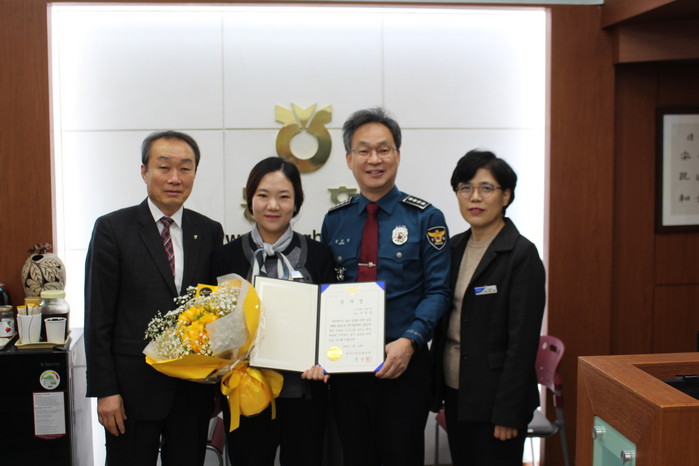 [세계로컬타임즈 류종민 기자] 대구 수성경찰서는 보이스피싱 피해 예방에 기여한 은행원에게 감사장을 수여했다.