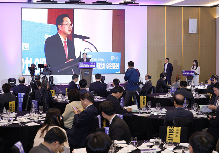 ▲ 2027 충청권 하계세계대학경기대회 조직위원회(이하 ‘조직위원회’)는 14일 세종 메리어트 호텔 그랜드볼룸에서 2023년 제2차 위원총회를 개최했다.(사진=대전시) |