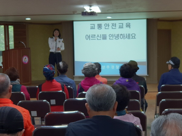 | ▲ 남양주경찰서 교통과는 수동면 동부노인복지관에서 어르신을 상대로 교통안전교육을 하고 있다. <사진제공=남양주경찰서> |