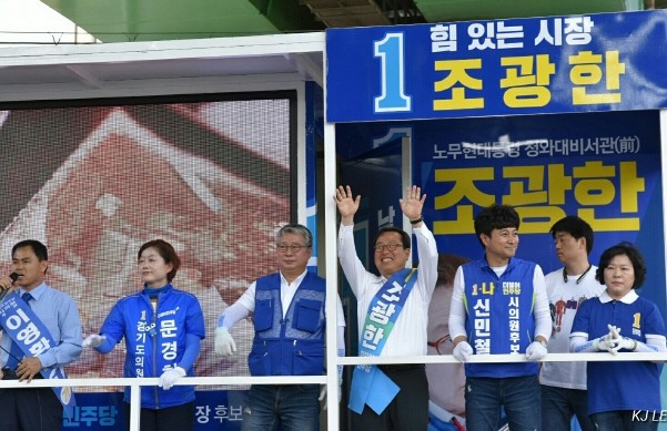 조광한 후보는 "지금 우리나라에는 불과 반년 전만해도 상상할 수도 없었던 남북관계의 변화가 일어나고 있다"며 "새로운 희망을 만들어 가는 이 변화는 대통령 한 분 바꿔 일어난 일이라며 새로운 대한민국의 모습에 가슴 뭉클해진다"고 말했다.