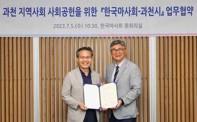 이날 협약에는 하승진 과천부시장, 탁성현 한국마사회 홍보실장이 참석해 지역을 위한 정기적인 지역 사회공헌 아이템 공유, 협업을 통한 사회공헌사업 등을 추진하기로 했다.