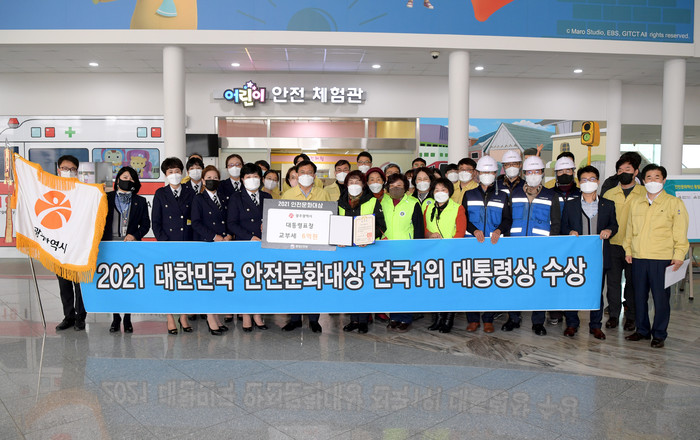 [세계로컬타임즈 김준행 기자] 광주광역시는 9일 행정안전부 주관으로 정부세종컨벤션센터에서 열린 ‘2021 안전문화대상’ 시상식에서 대통령 기관표창을 수상하고, 인센티브로 재난안전특별교부세 6억원을 교부받았다고 10일 밝혔다.