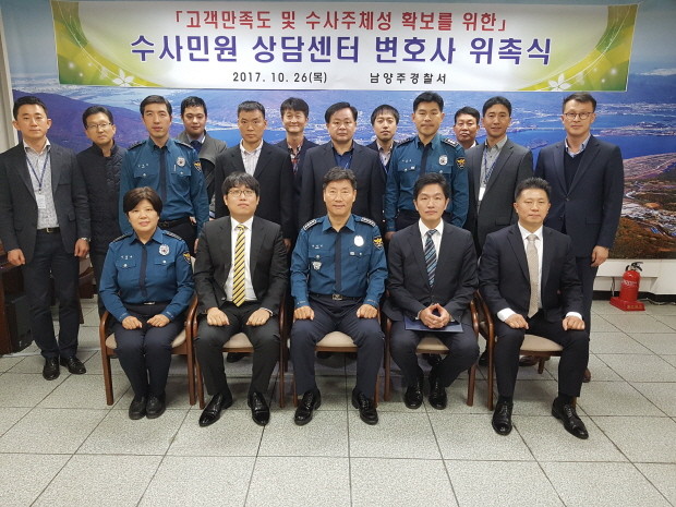 남양주경찰서 수사민원 상담센터는 경찰관들과 변호사 9명이 상주해 근무하고 있으며(변호사는 월, 수, 금 오전 9시~12시, 오후 2시~5시에 교대 근무) 지역주민들이 이용하는데 어려움이 없도록 최선을 다해 운영하고 있다.