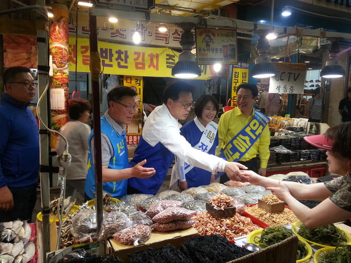 이후 박 위원장 일행은 구리전통시장으로 자리를 옮겨 안승남 구리시장후보, 장승희 시의원후보(가선거구 1-나)와 박석윤(나선거구 1-나) 후보와 함께 시민들의 폭넓은 지지를 부탁했다.