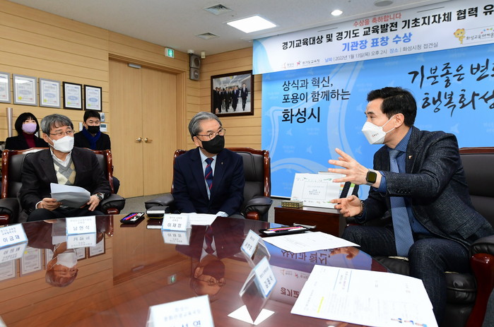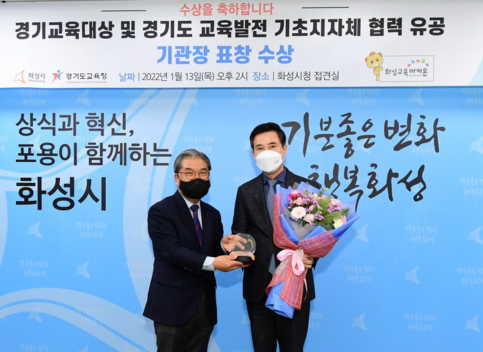 이재정 경기도 교육감은 직접 화성시를 방문해 ‘제37회 경기교육대상 교육협력분야 표창’과 ‘2021년 경기도 교육발전 기초지자체 협력사업 유공 기관장 표창’을 수여했다.