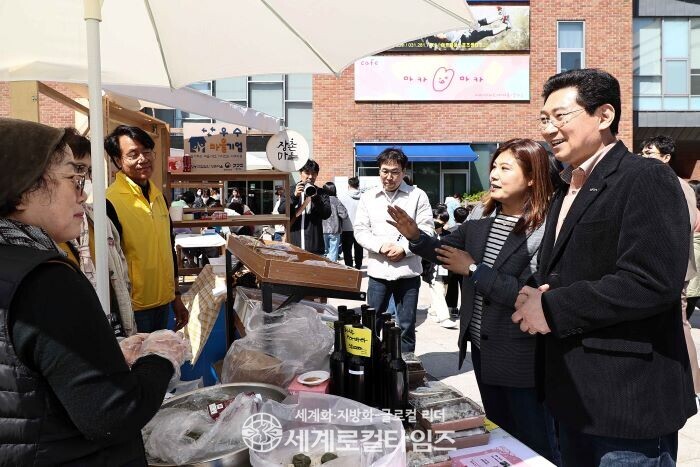 이상일 용인시장도 이날 두레마켓을 찾아 관계자들을 격려하고 시민들과 소통하는 시간을 가졌다.