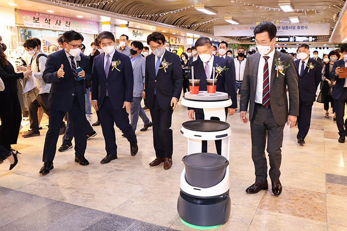 대전시는 다수·다종의 로봇을 활용한 융합모델 실증사업의 첫 사례로 대전 중앙로 지하상가에 배달로봇, 물류로봇, 방역순찰로봇 등을 활용한 실증사업을 소개하고 시연하기 위해 이날 행사를 개최했다.