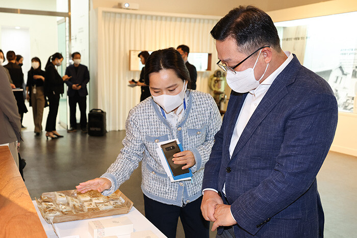 전시에는 대전의 무형문화재인 단청장 김성규 보유자의 작품을 현대적인 디자인으로 재탄생시킨 우송대학교 디자인학과 학생들의 빵(떡) 상자를 선보이며 무형문화재를 매개로 전승자와 지역기업, 지역대학의 상생 모델로 제시했다.