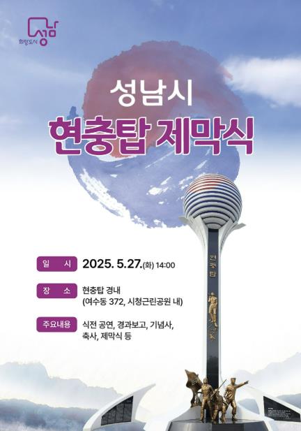 성남시 5월 27일 시청공원 내 현충탑 제막식 안내 포스터