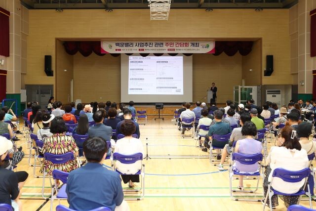 이날 간담회는 백운밸리 도시개발사업 추진현황을 설명하고, 사업과 관련한 지역 주민들의 궁금증을 해소하기 위해 마련했다.