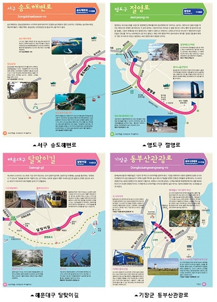 올해에는 ▲부산의 떠오르는 관광명소인 서구의 ‘송도해변로’ ▲영도구 ‘절영로’ ▲해운대구 ‘달맞이길’ ▲ 기장군 ‘동부산관광로’ 등 지역별 주요 도로명과 주변 관광명소에 대한 정보를 최신화 하고 디자인도 한층 개선해 발간했다.
