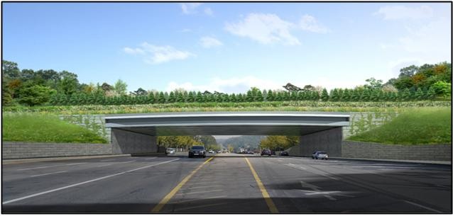 양재대로 녹지연결로(연장 52.6m, 폭 20m 규모)는 양재대로 8차선 도로에 의해 단절된 개포동 달터근린공원과 구룡산을 잇게 된다. 올 7월 착공해 내년 6월 완공이 목표다.