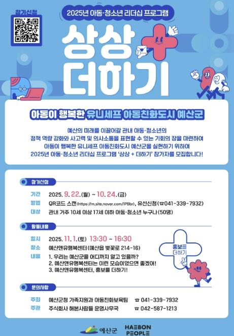 모집 대상도 관내 거주 10세 이상 17세 이하 아동·청소년 50명으로 확대됐으며, 신청 방법 역시 기존 정보무늬(QR코드) 활용뿐 아니라 유선(041-339-7932) 신청도 가능해져 더 많은 아동·청소년이 참여할 수 있는 기회가 열렸다.
