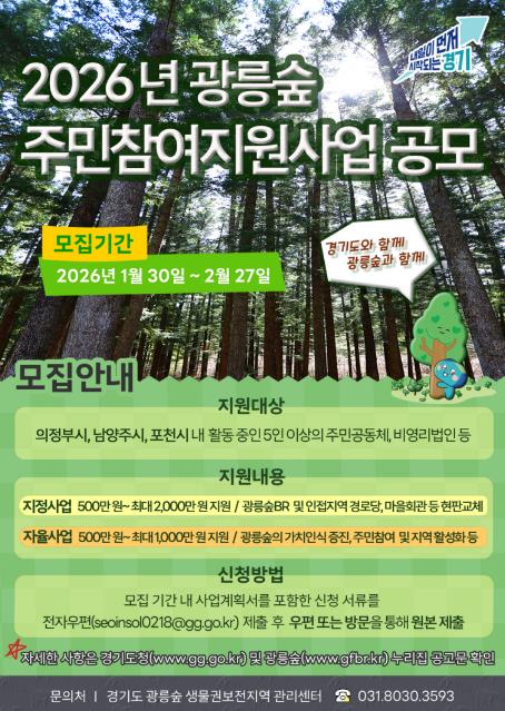 김일곤 경기도 산림녹지과장은 “이번 사업을 통해 광릉숲 생물권보전지역의 가치를 더욱 알리고, 지역 주민들의 소속감 형성 및 광릉숲의 지속 가능한 발전을 이끌어 나갈 것”이라고 말했다.