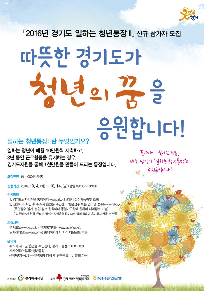 [세계로컬신문 온라인뉴스팀] 경기도가 일하는 청년통장 시범사업에 이어 ‘일하는 청년통장 Ⅱ’를 실시한다.