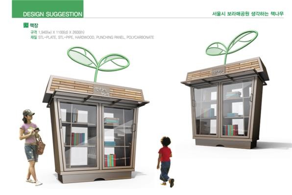 이 프로젝트는 공원에 나무를 심는 마음을 담아 ‘책 나무’라는 명칭을 붙였고 그 의미를 보여주기 위해 화분에 새싹이 돋아나는 모양으로 책장을 디자인했다.