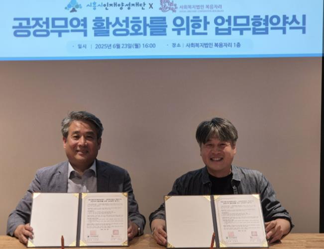 [세계로컬타임즈] (재)시흥시인재양성재단은 지난 6월 23일 사회복지법인 복음자리와 공정무역 활성화 및 환경ㆍ사회ㆍ지배구조(ESG) 경영 실천을 위한 업무협약을 체결했다.