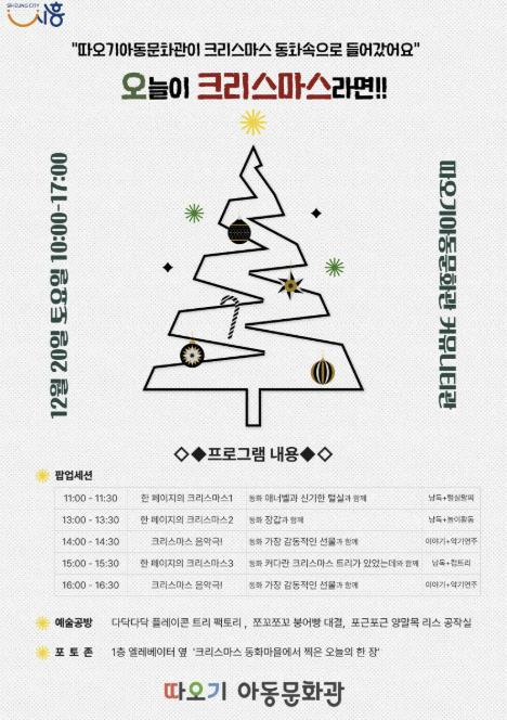 따오기아동문화관 관계자는 “올해 크리스마스 행사는 동화를 중심으로 구성해, 아이들이 상상력과 감성을 동시에 느낄 수 있는 경험을 만들고자 했다”라며 “가족이 함께 머물며 즐겁게 이야기를 나누는 시간이 되길 바란다”라고 말했다.