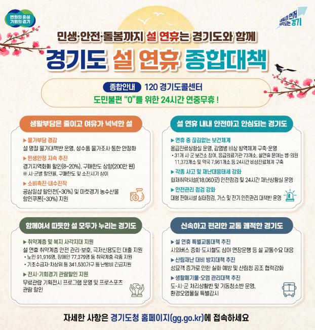 [세계로컬타임즈] 경기도가 도민들이 따뜻하고 편안한 명절을 보낼 수 있도록 ‘설 연휴 종합대책’을 추진한다.