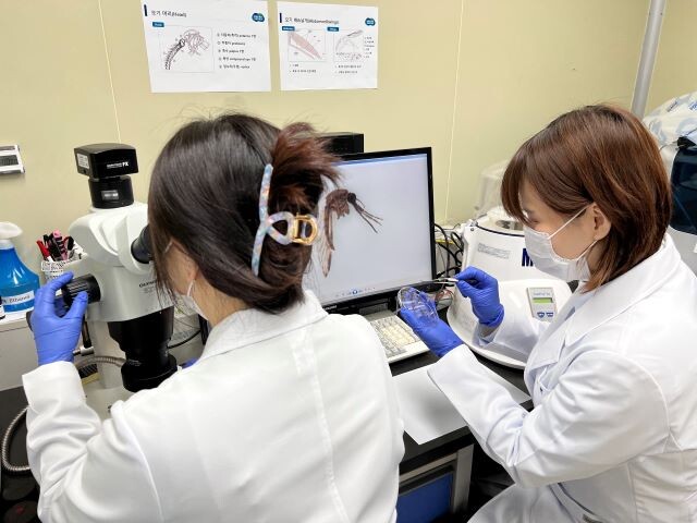 ▲ 보건환경연구원 직원들이 말라리아 매개모기에 대한 검사를 하고 있다.(사진=경기도) |