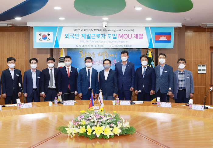 화순군은 외국인 계절근로자 도입을 목표로 지난 8월 31일부터 9월 4일까지 캄보디아를 방문해 노동직업훈련부와 계절근로자 도입을 협의하고, 주한캄보디아대사관과 여러 차례 협의를 통해 협약 체결에 성공했다.
