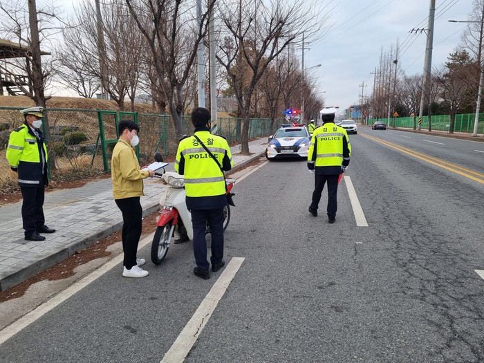 이번 단속은 퇴근시간대인 오후 5시부터 7시까지 단속장소 곳곳에 관·경이 배치돼 현장에서 3명을 적발해 불법행위에 대한 과태료 50만원부과를 고지하고, 차후 무등록 이륜차를 등록하고 이용할 것을 안내했다.