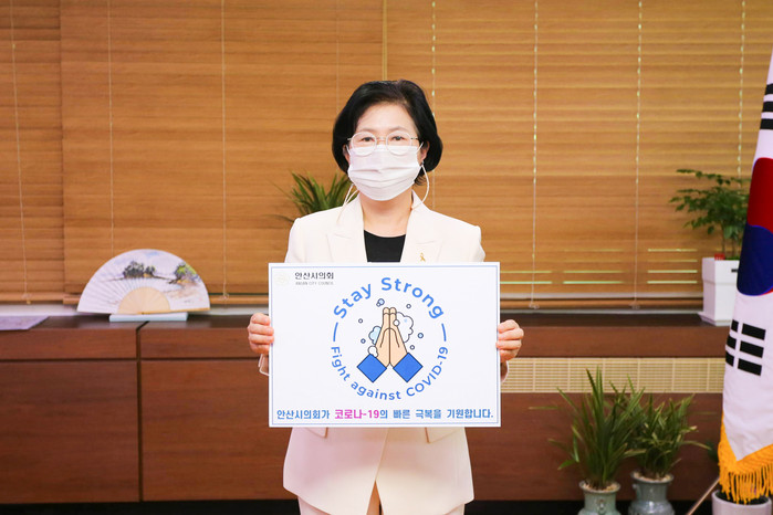 [세계로컬타임즈 이관희 기자]박은경 안산시의회 의장은 ‘스테이 스트롱’ 캠페인 참여를 통해 시민에게 코로나19 극복과 조기 종식을 기원하는 메시지를 전했다.